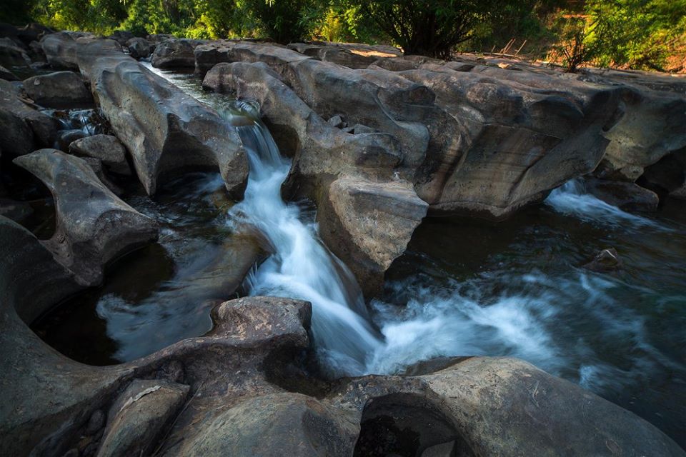 เป็นน้ำตกที่อยู่ในเขตบ้านห้วยไผ่ใต้ เป็นลำน้ำชีที่ไหลผ่านมา มีพันธุ์ไม้หลากหลายชนิดและพันธุ์ปลาน้ำจืดมากมาย เป็นบริเวณที่สวยงาม เป็นแหล่งท่องเที่ยวของผู้คนในตำบลหนองแวง ลักษณะของน้ำตกจะเป็นลำธารที่ไหลผ่านหินที่ลักษณะแปลกตาจากการกัดเซาะเป็นร่องเป็นแก่งจำนวนมากอย่างสวยงาม และแปลกตาไม่เหมือนที่ใด การเดินทางออกจากหนองบัวแดง ไปทางถนนเส้น หนองบัวแดง – บ่อทอง ประมาณ 13 กิโลเมตร เข้าบ้านหนองสำราญเลย ปั้มน้ำมันให้เลี้ยวขวาไปประมาณ 500 เมตรจะเจอสี่แยกให้เลี้ยวซ้าย ขับรถไปตามเส้นทางประมาณ 3 กิโลเมตร ก็จะถึงบ้านห้วยไผ่ใต้เข้ารถเข้าไปในหมู่บ้านจะเจอสี่แยกทางไปโรงเรียนบ้านห้วยไผ่ใต้ ให้ขับรถไปตามเส้นทางผ่านหน้าโรงเรียนบ้านห้วยไผ่ใต้ไปเรื่อยๆเข้าไปในเส้นทางป่าประมาณ 1 กิโลเมตร จะเจอสามแยกให้เลี้ยวซ้ายขับรถไปอีกประมาณ 500 เมตรก็จะถึงน้ำตกแก้งใหญ่